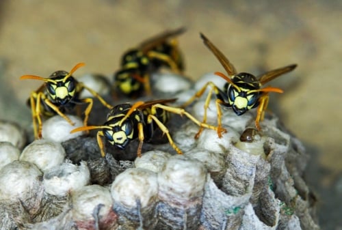 Wasps (which include hornets and bees) are aggressive, territorial insects that pose a serious risk—especially for individuals with allergies. They construct their nests almost anywhere, such as under decks, over doors, under eaves, in the ground and on trees, posing a risk to families, visitors, workers, students and clients.